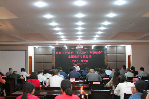 按照市委“不忘初心、牢记使命”主题教育领导小组要求和市卫健委《关于开展“不忘初心、牢记使命”主题教育实施方案》步骤安排,9月25日下午,市卫健委党组书记、主任樊林奎以《不忘初心守健康 牢记使命勇担当 为实现新时代美丽晋城高质量转型发展贡献力量》为题,向我市卫健系统干部职工讲授专题党课。