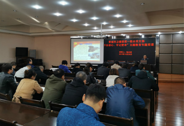 为进一步深入开展“不忘初心、牢记使命”主题教育,加强第一联合党支部全体党员对中国共产党一大的了解,感悟初心、砥砺前行,10月25日,市卫健委第一联合党支部书记陈杰斌以《学党史 感悟初心 跟党走 砥砺前行》为题,向第一联合党支部全体党员讲授专题党课。